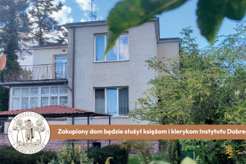 Duszpasterstwo Tradycji Łacińskiej Archidiecezji Białostockiej otrzymało ofertę zakupu nieruchomości przyległej bezpośrednio do terenu duszpasterstwa. Przełożeni Instytutu Dobrego Pasterza zaakceptowali zakup i formę nabycia. Nieruchomość zostanie zakupiona przez naszą Fundację Vexilla Regis. Po erygowaniu domu Instytutu Dobrego Pasterza o które cały czas prowadzone są starania i jednoczesnym uzyskaniu osobowości prawnej przez instytut, własność nieruchomości zostanie przekazana instytutowi. Zakupiony dom Dowiedz się więcej